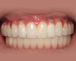 If you are missing all of your teeth on your top or bottom arch, replace them with a dental implant-supported prosthesis that uses anywhere from four to six dental implants per arch to give you a permanent and strong replacement.